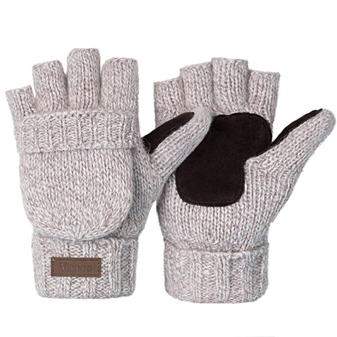 Fingerless Knitted Cotton Hunting Gloves White Or Beige